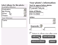 To place your photos in various albums, place your cursor on the black arrow and select “edit photo”.