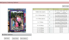 3. The following screen will display prints and gift items to choose from. Once you have selected your items, you may proceed to checkout.